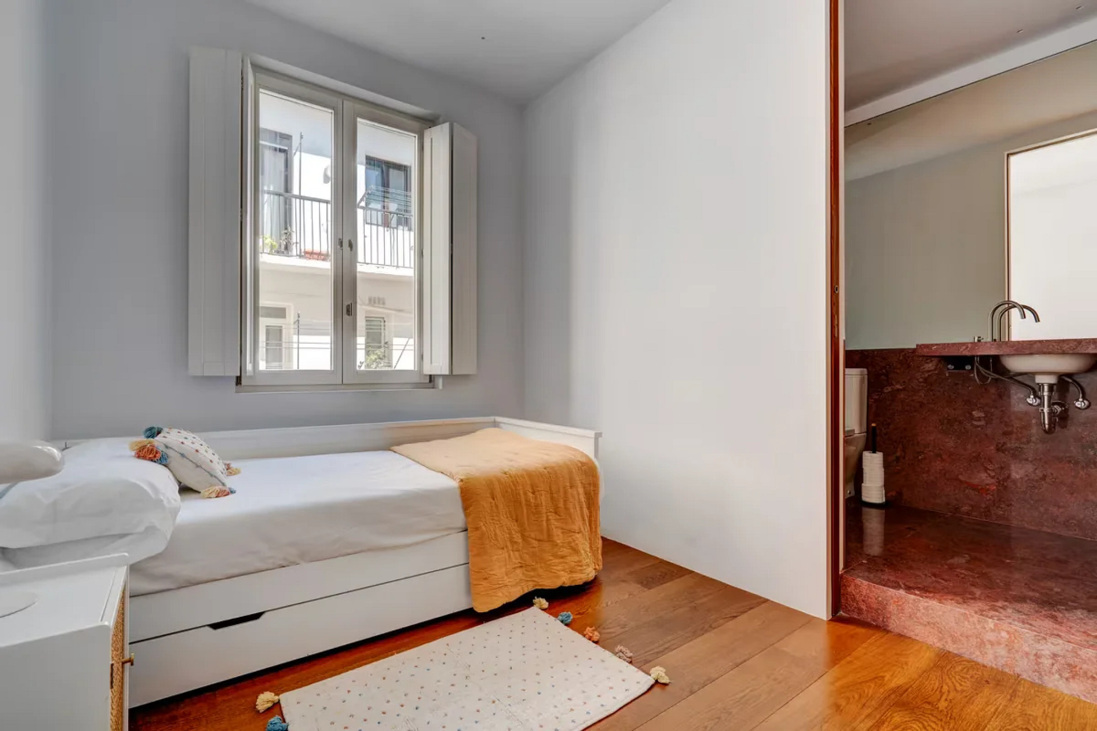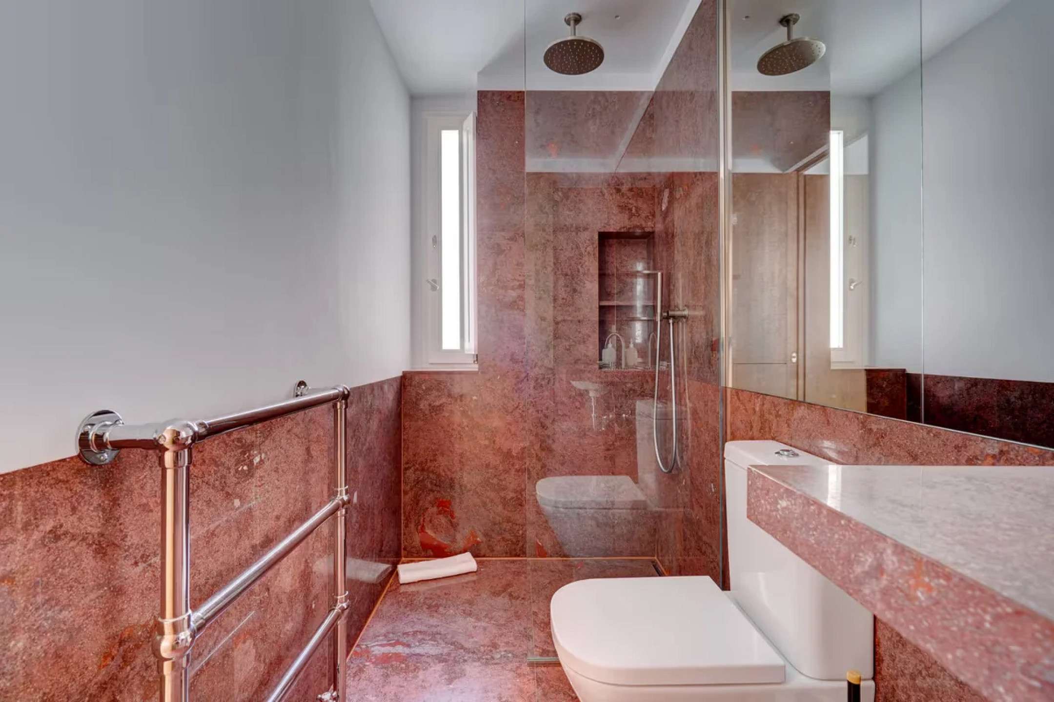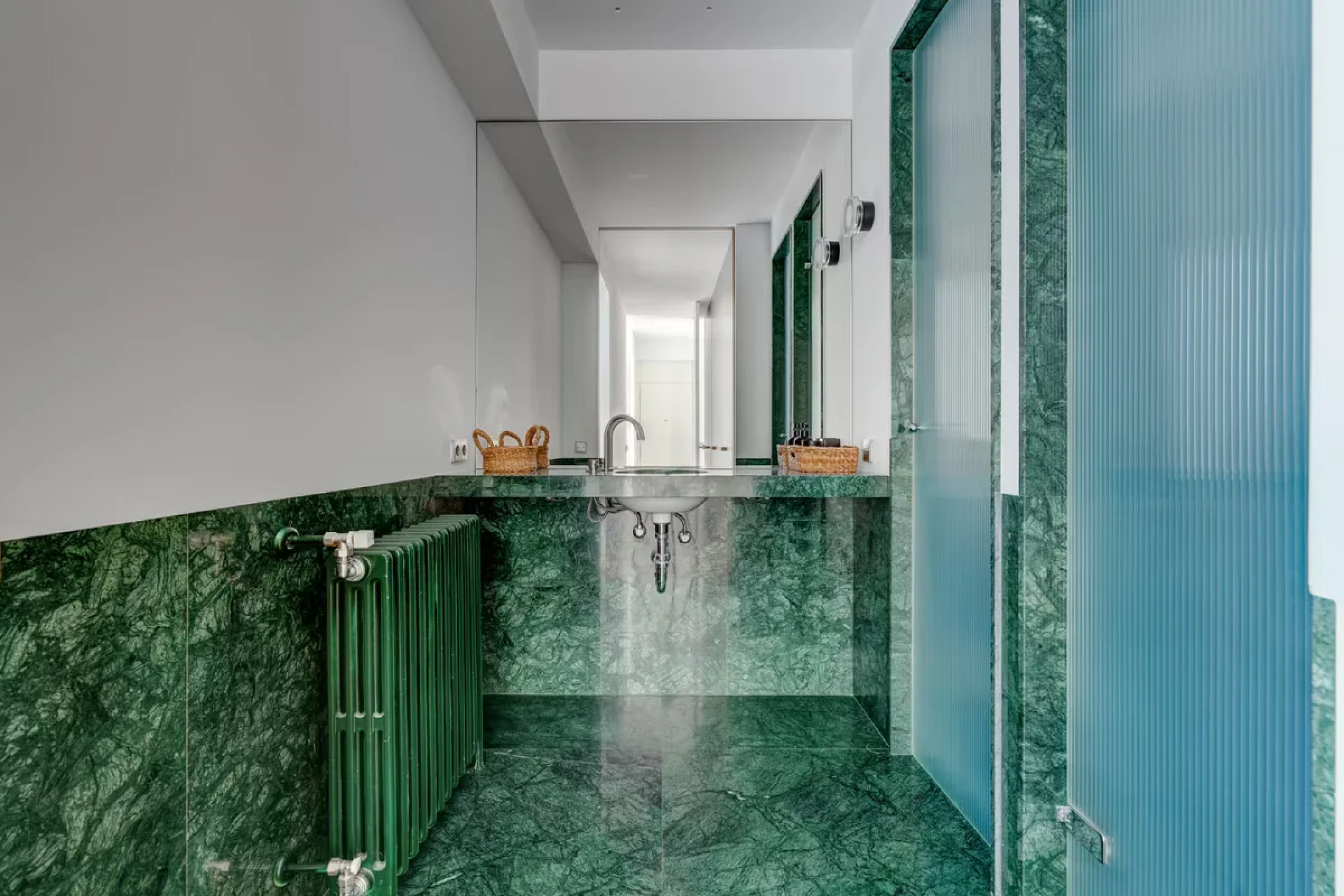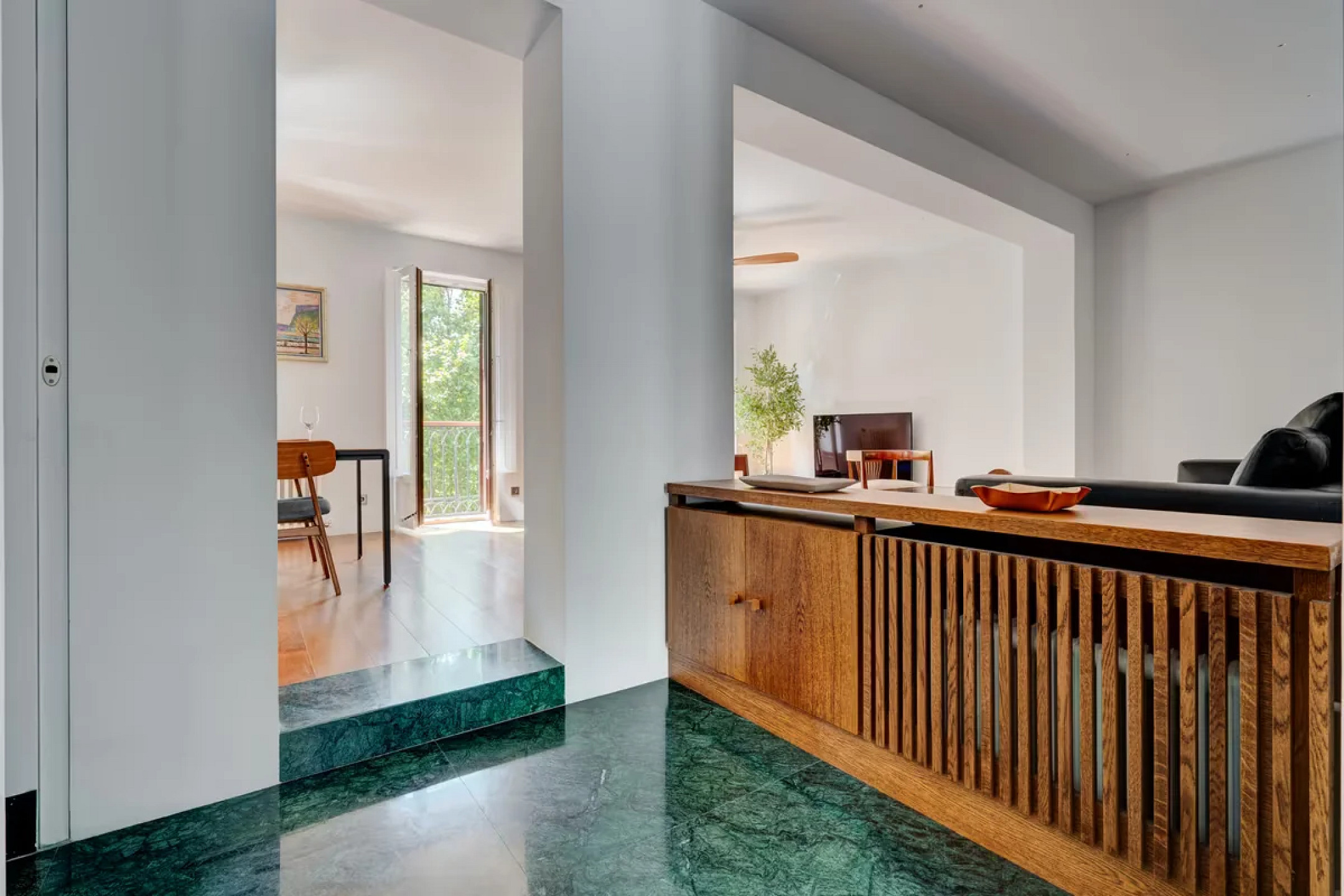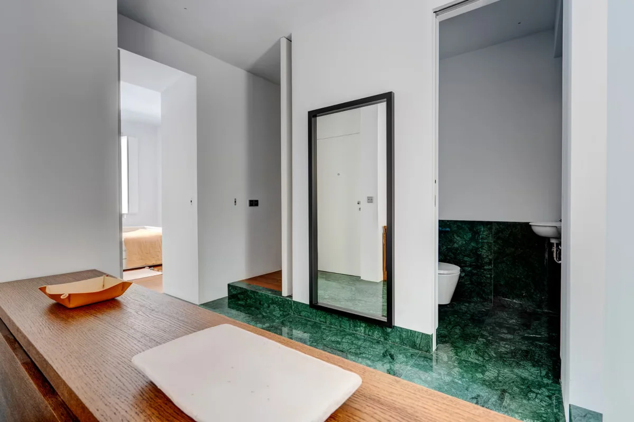 Located on the third floor of a historic building, this 100 m² residence has been fully renovated in a refined contemporary style and is ready to move into. Its interior, awarded for excellence in architecture and design, reflects a deep sense of harmony — from the thoughtful layout to the flawless balance of materials and natural light.