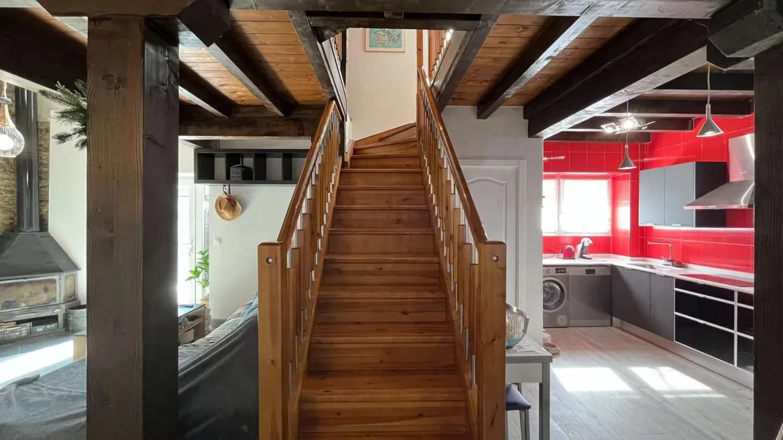 - 🏠 Ground floor: a spacious, light-filled kitchen ideal for family meals and gatherings with friends, a guest restroom, and a cozy living room with exposed stone walls that create a sense of authenticity and charm.