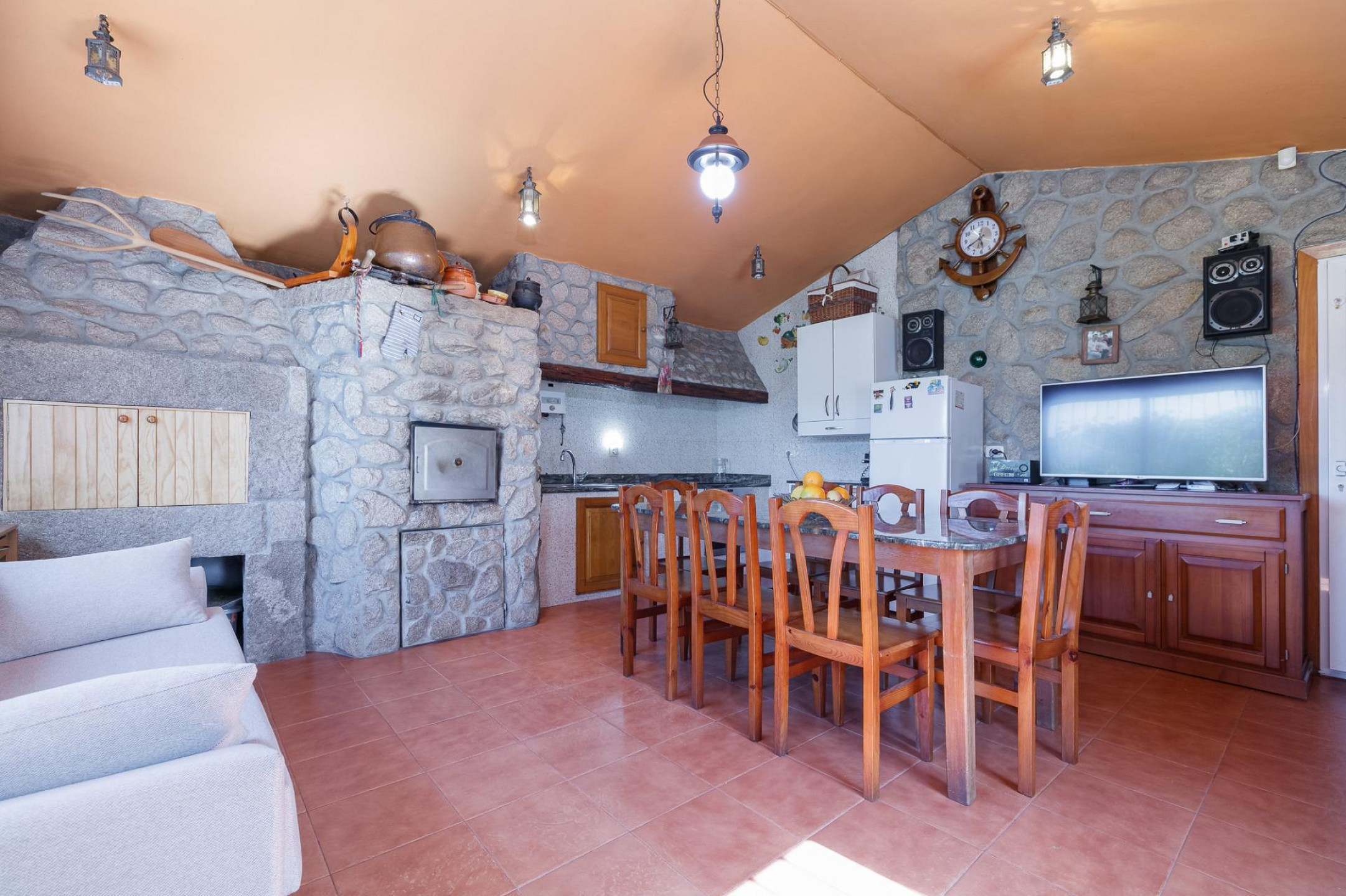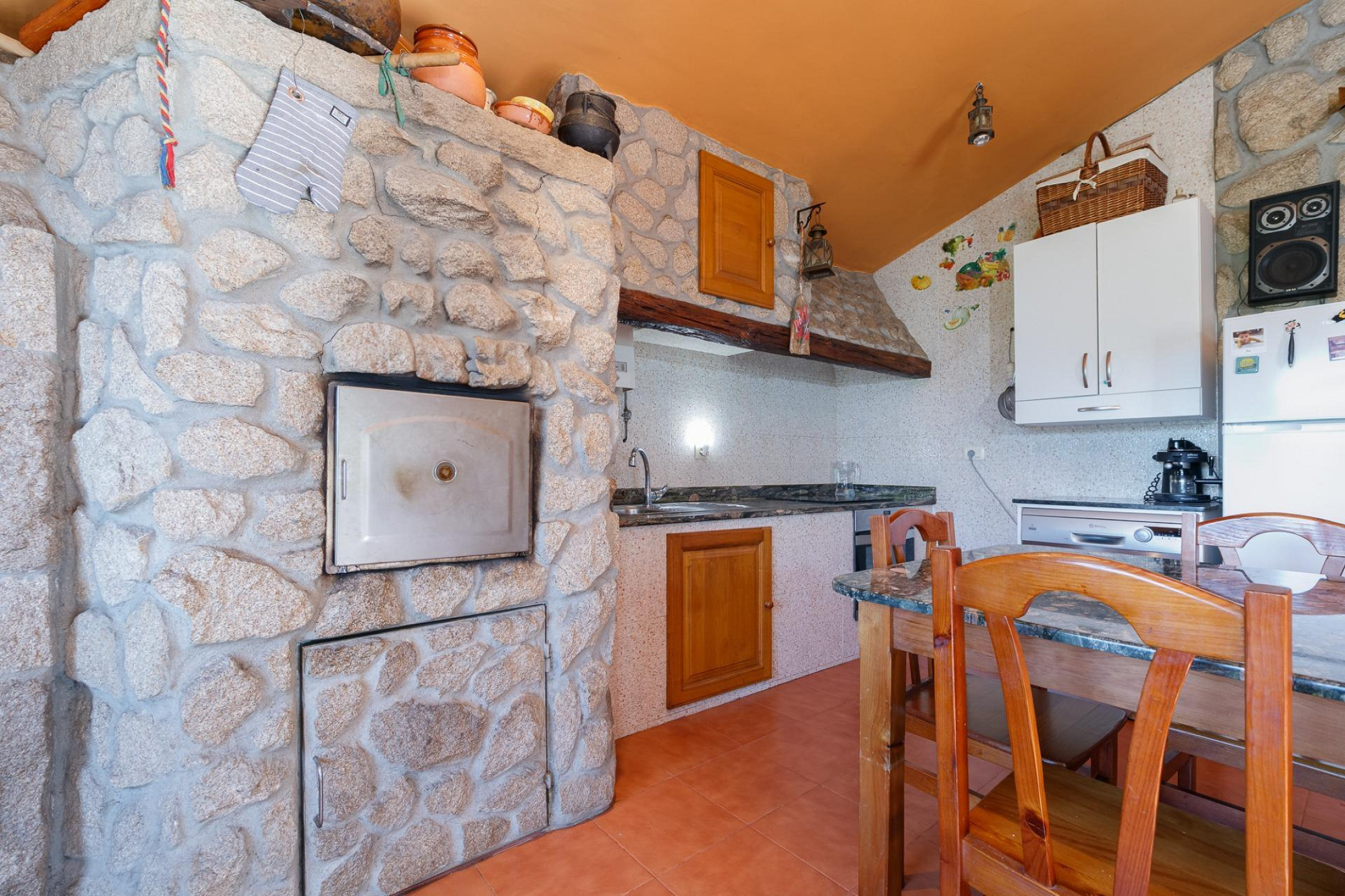 - A fully furnished kitchen connected to the dining area