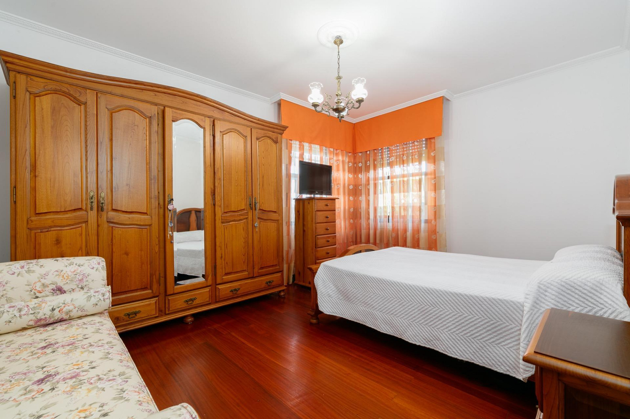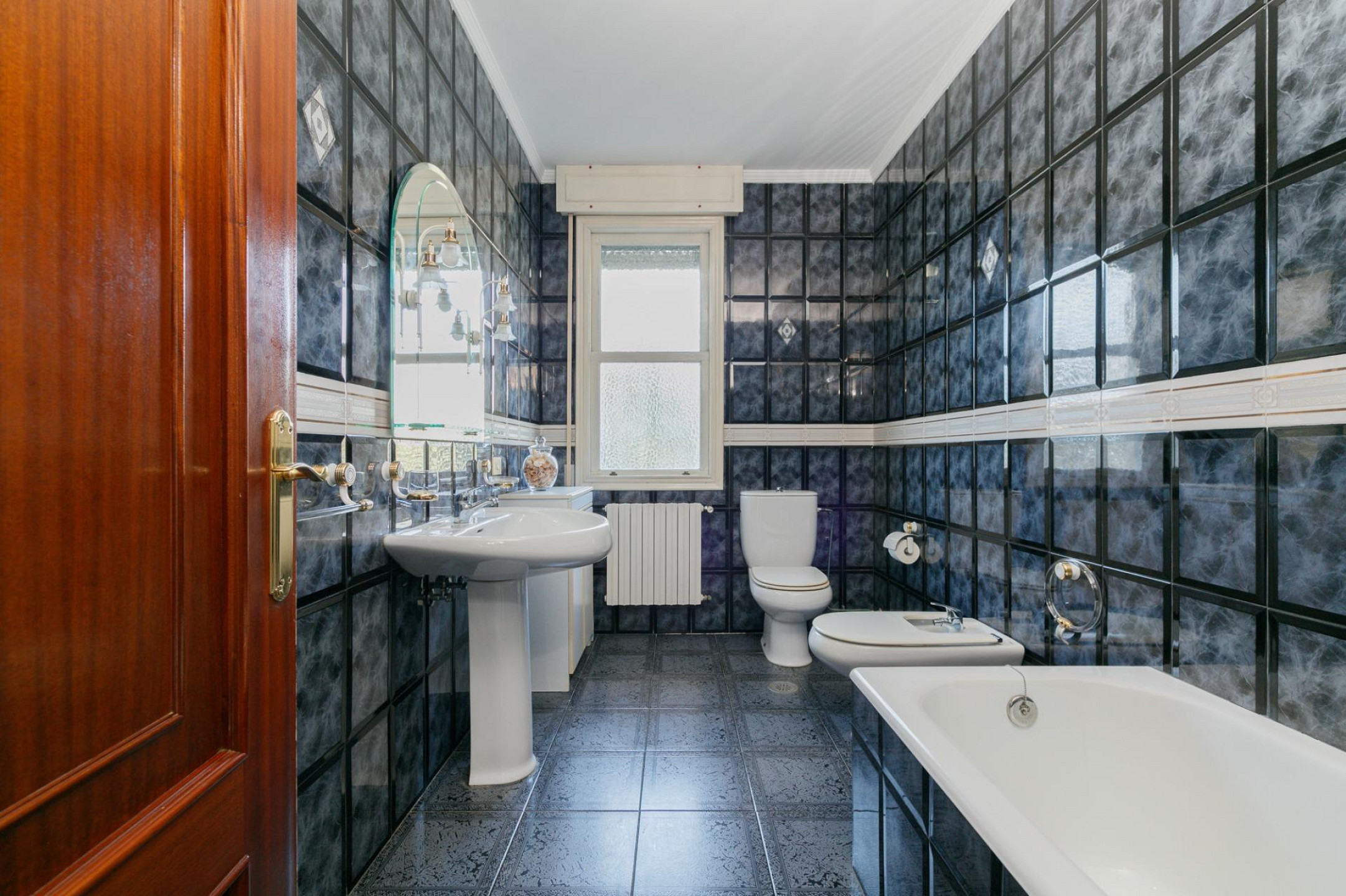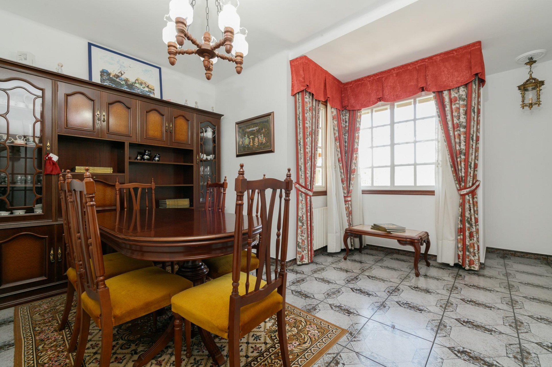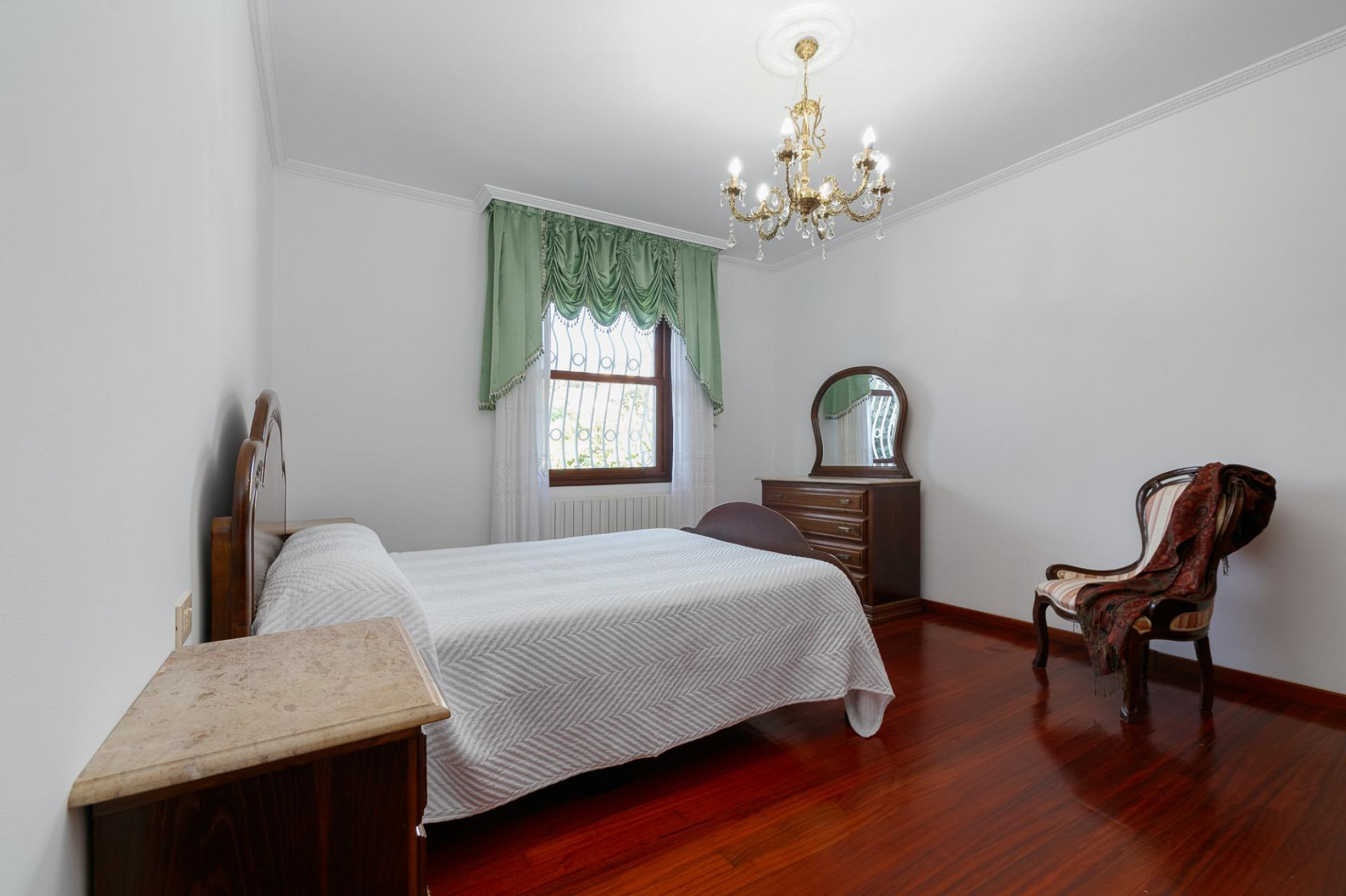 - Four bedrooms and two bathrooms, decorated in a classic style