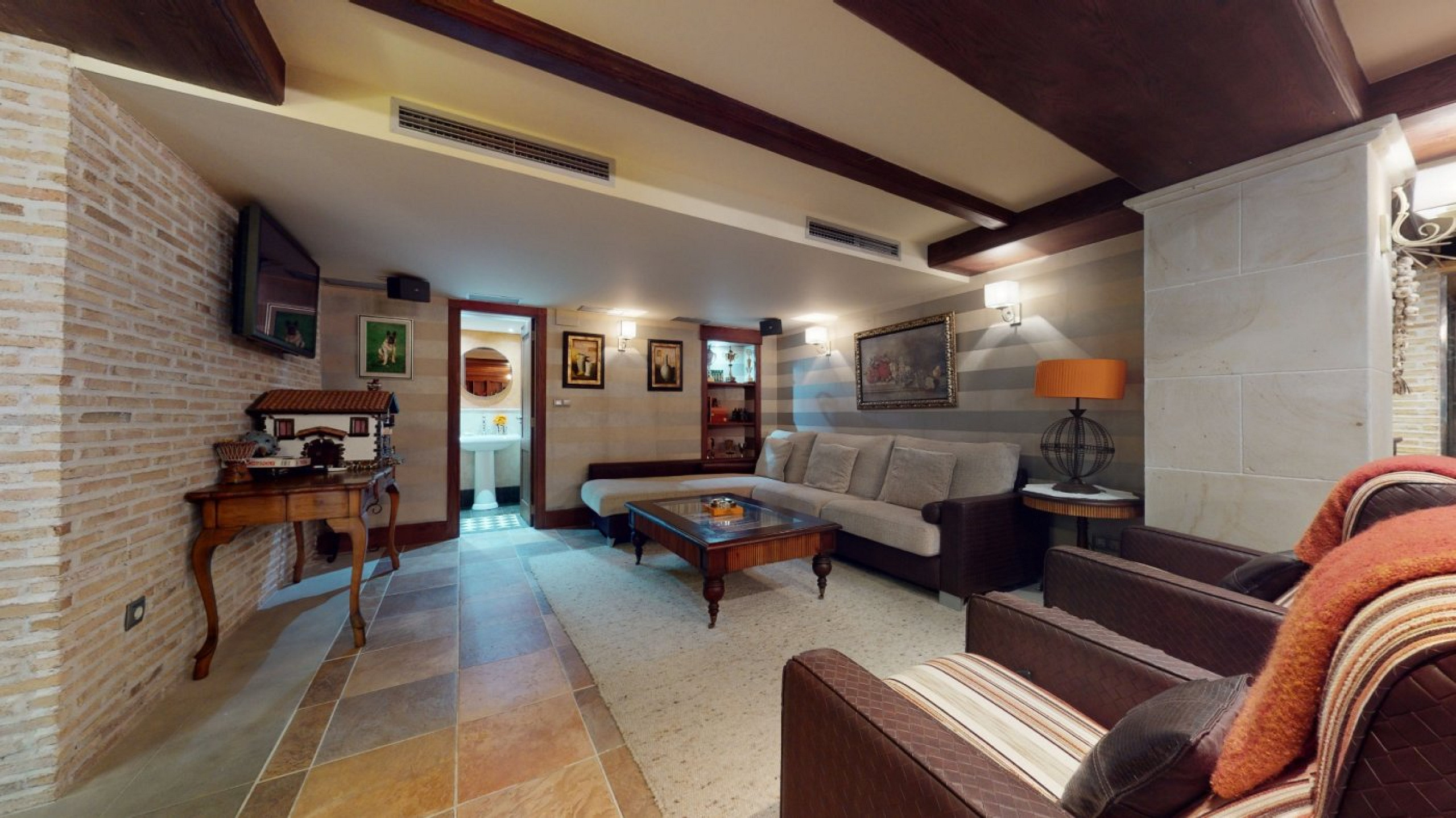 A separate entrance leads to a fully equipped txoko — an independent guest or entertainment area: