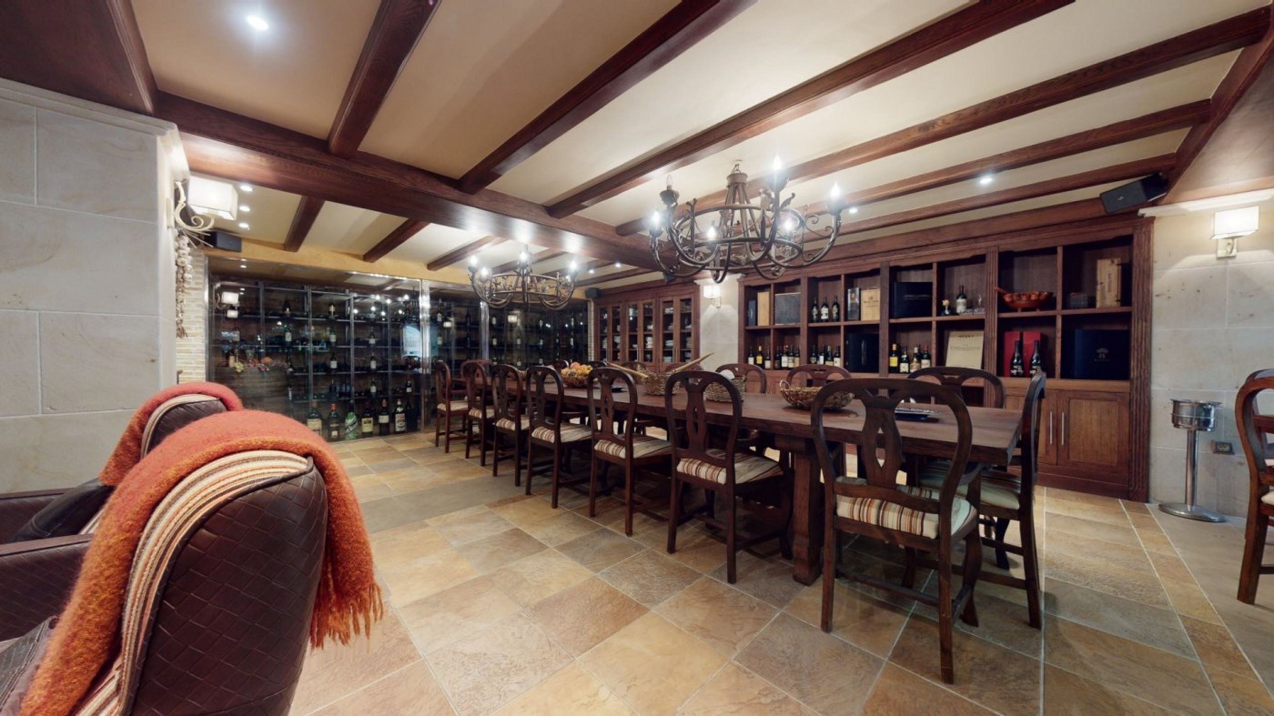 - Enclosed wine cellar with glass walls