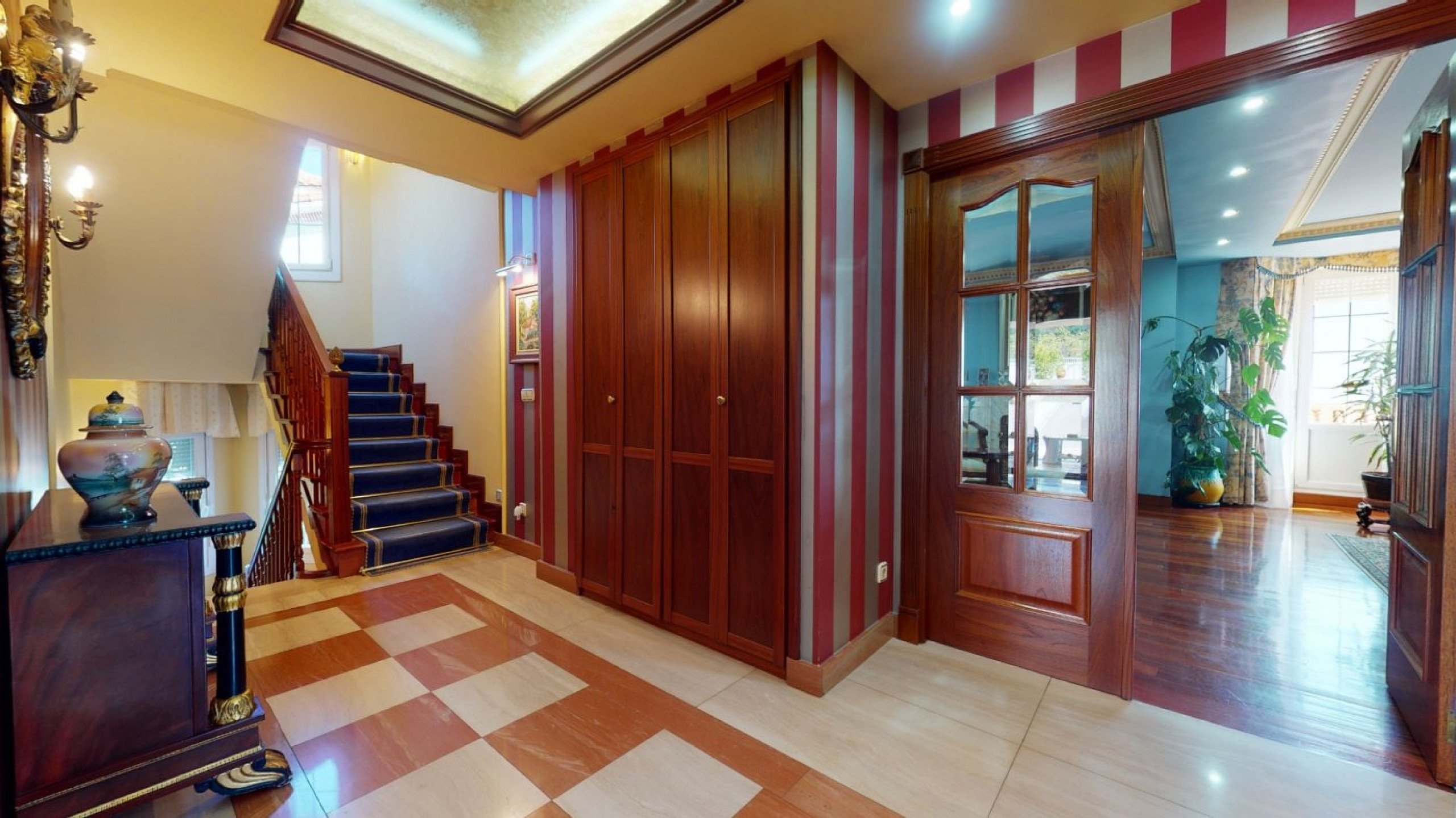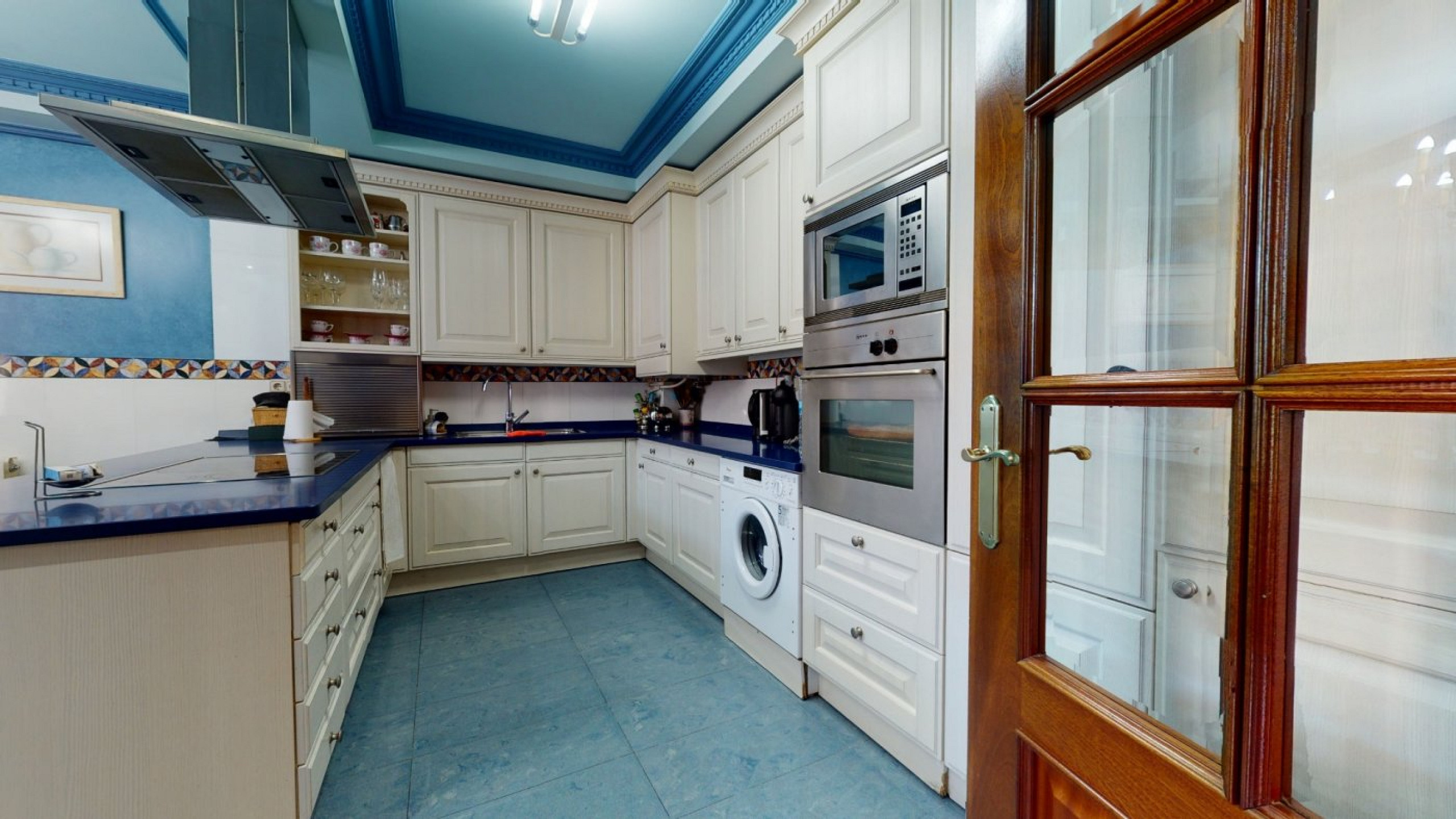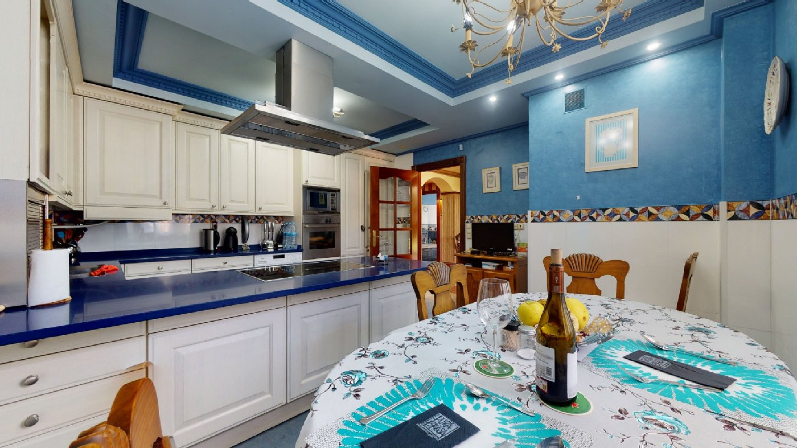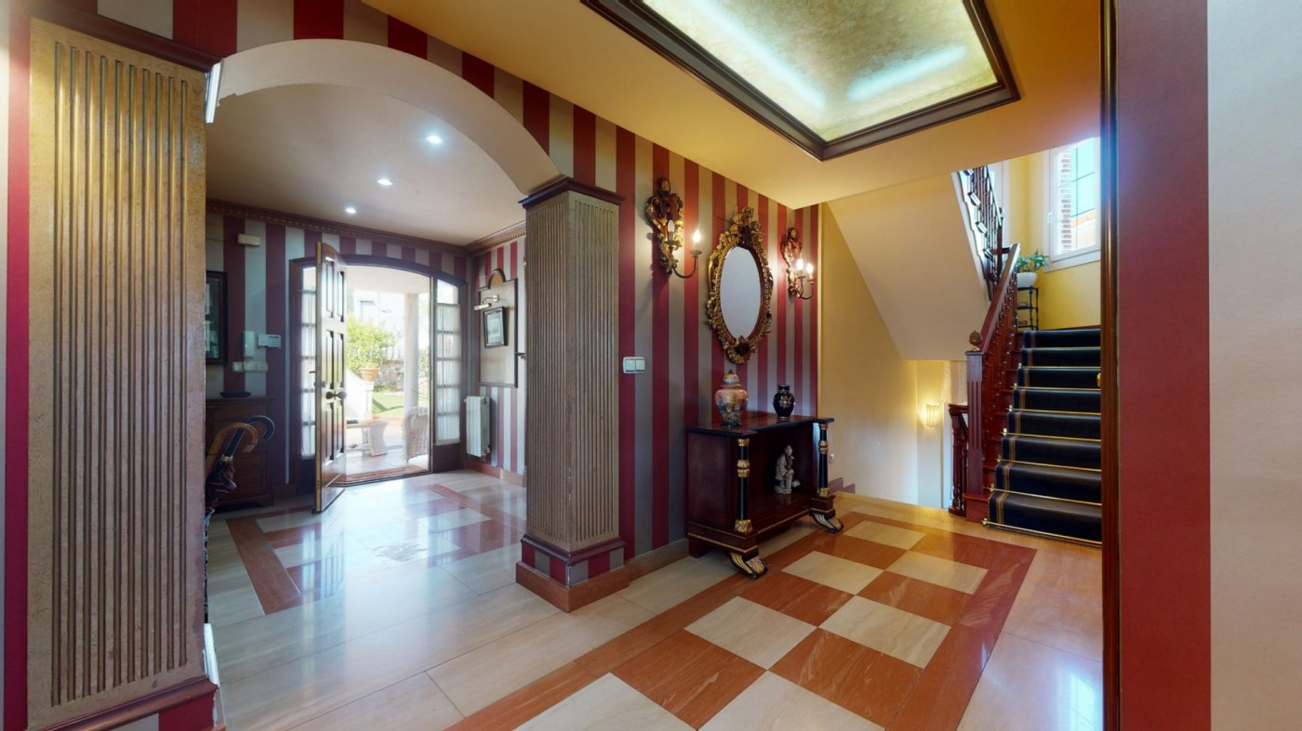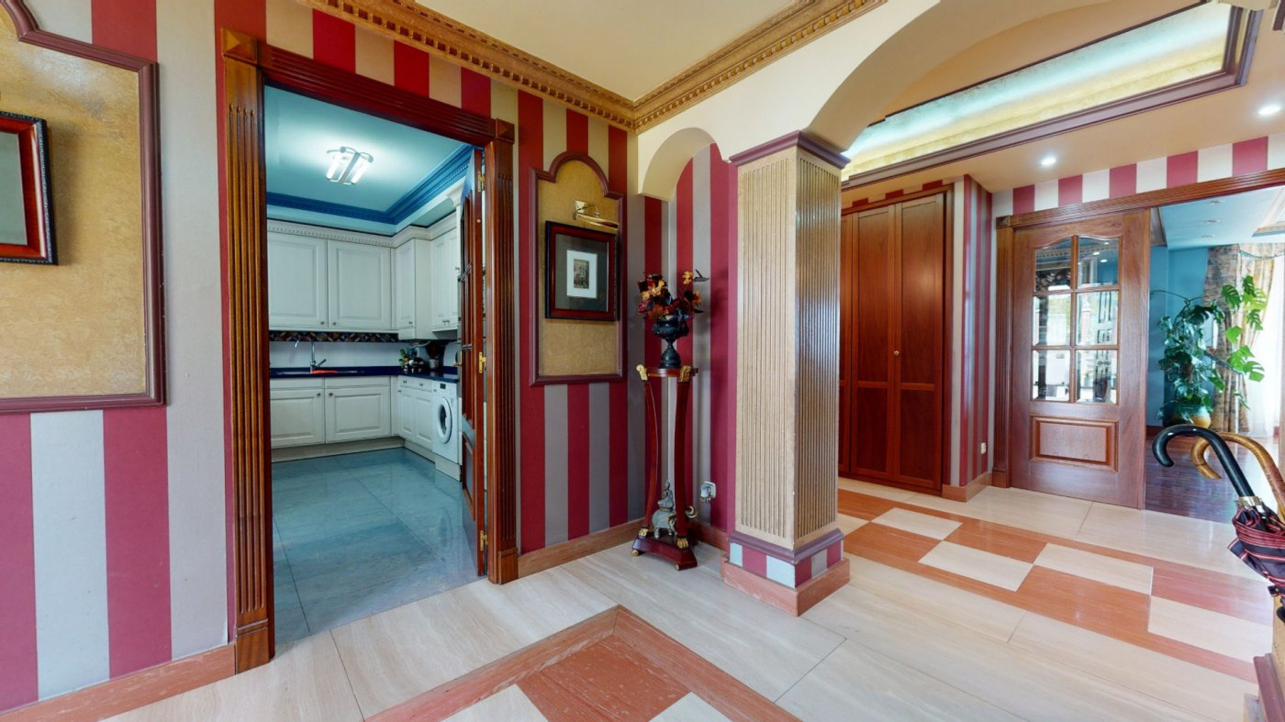 - Entrance hall and kitchen with central island and dining area
