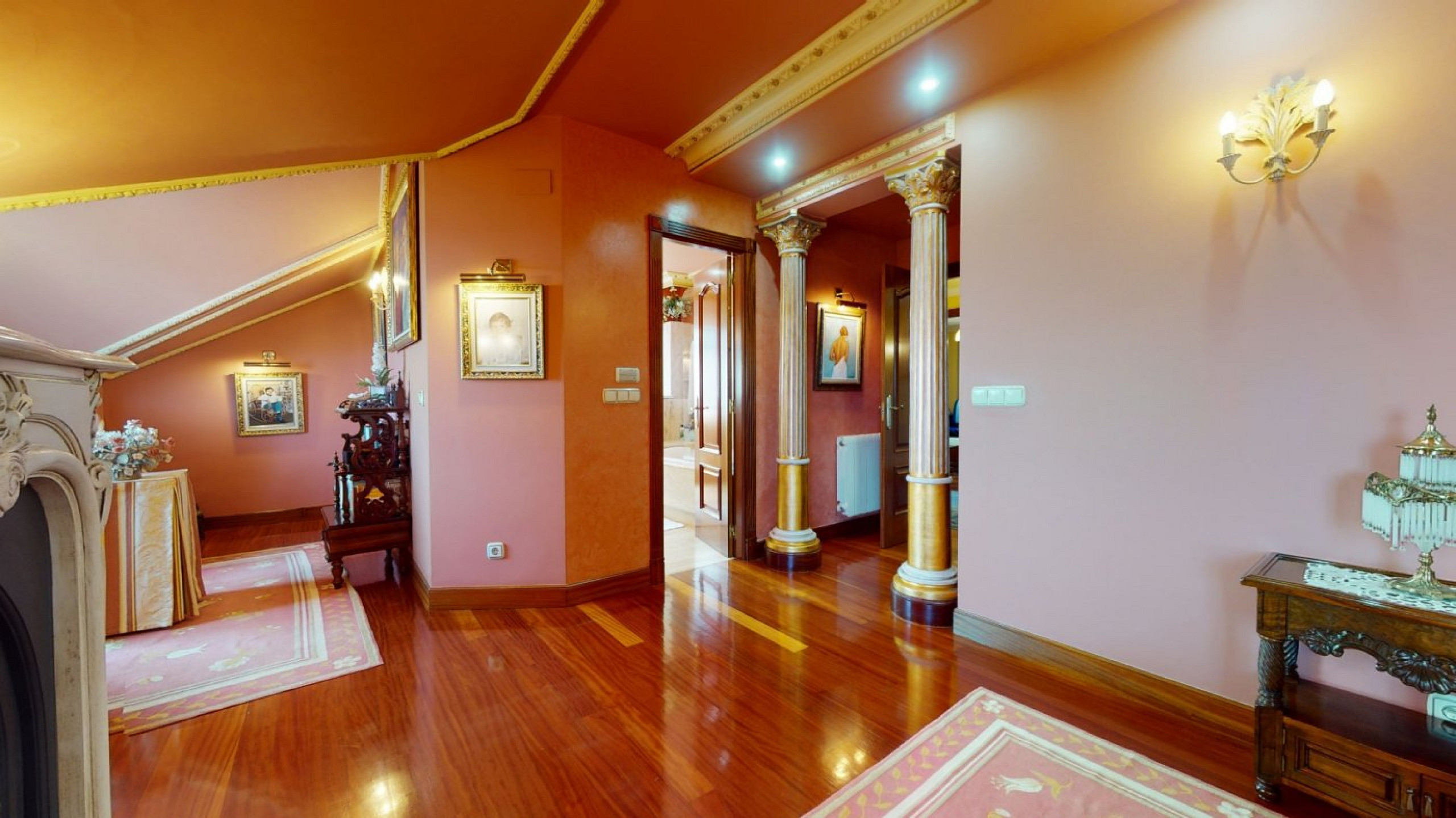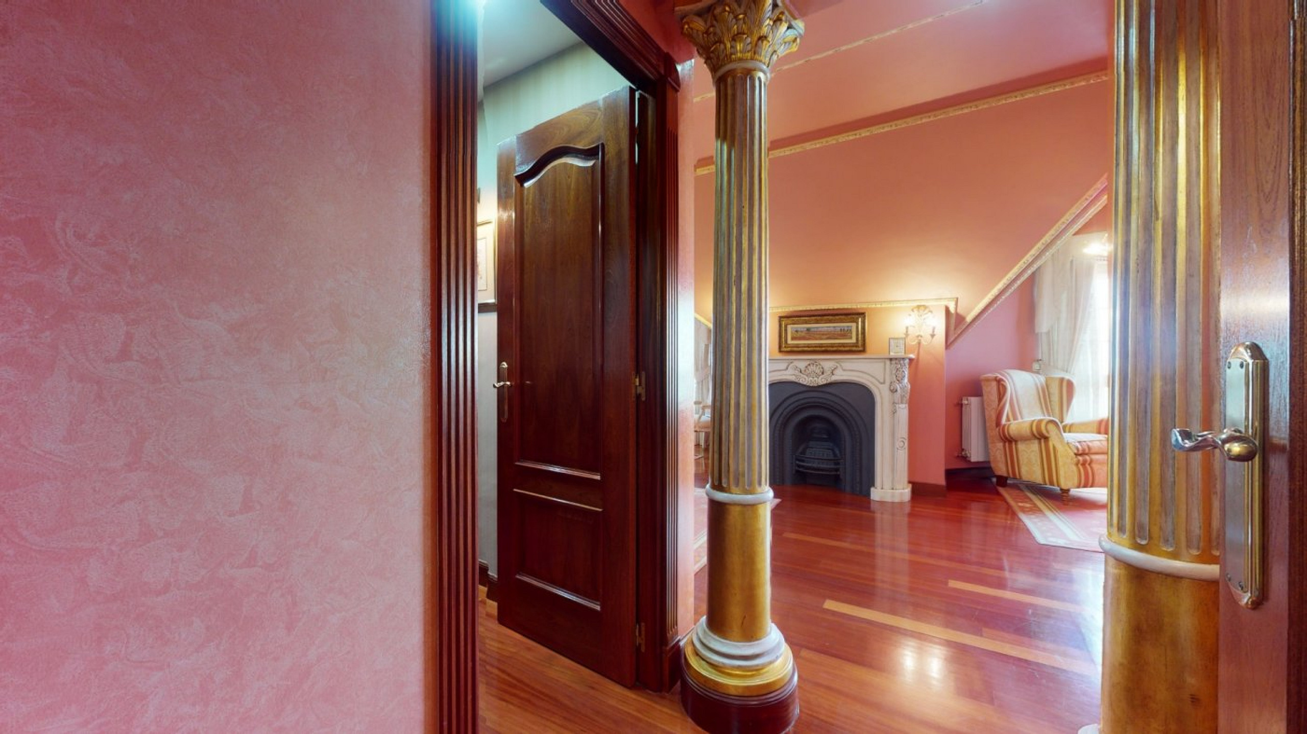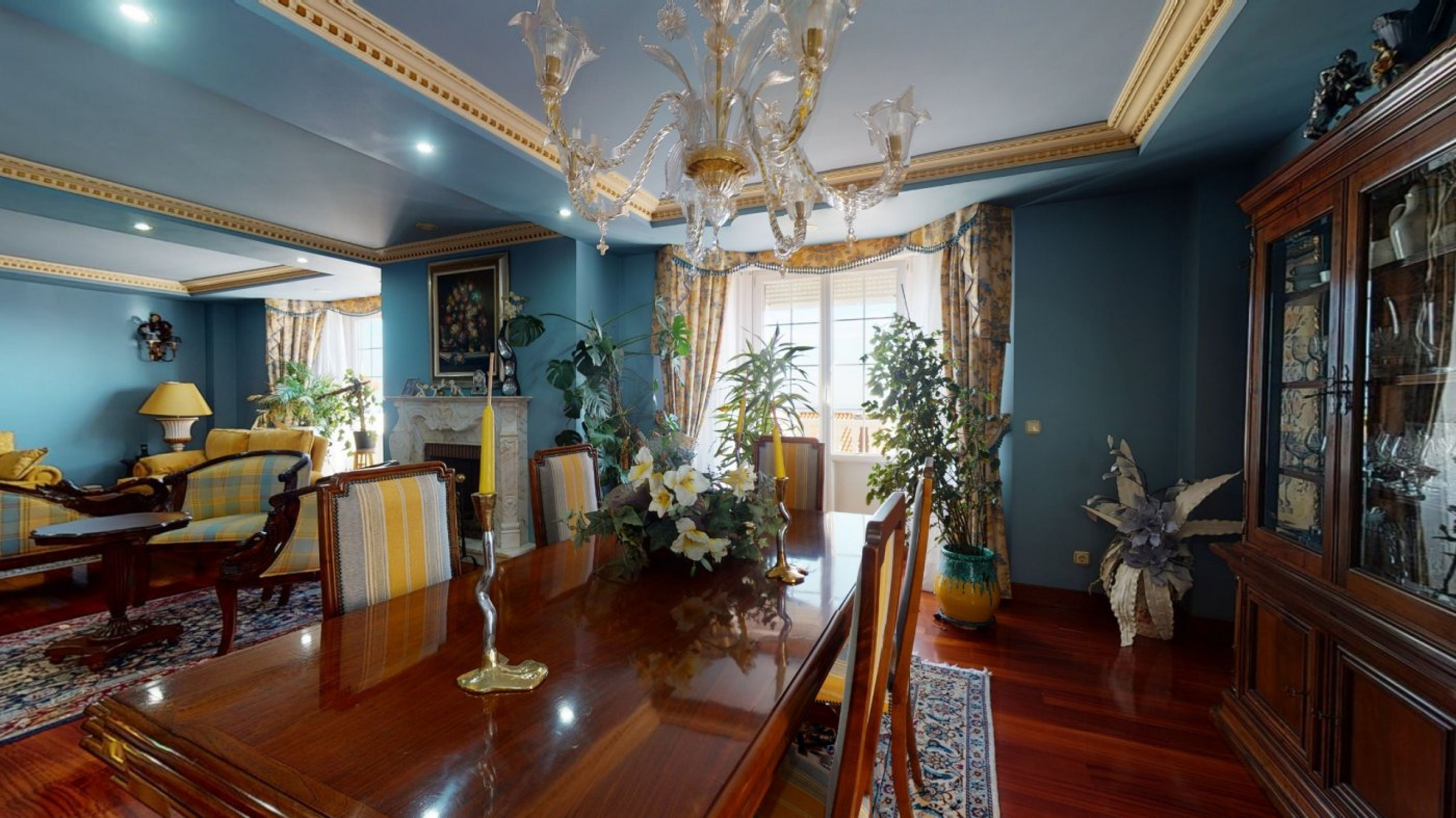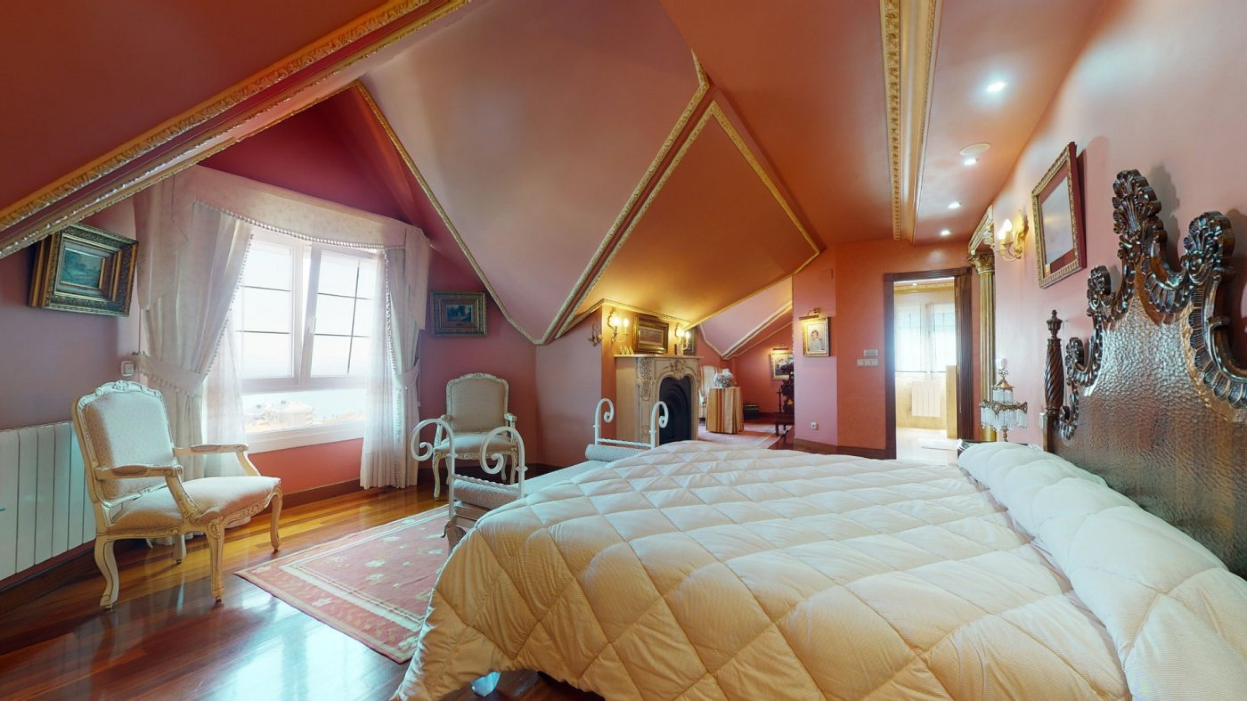 - Expansive living room with two sitting zones, a fireplace, and access to a terrace with sea views