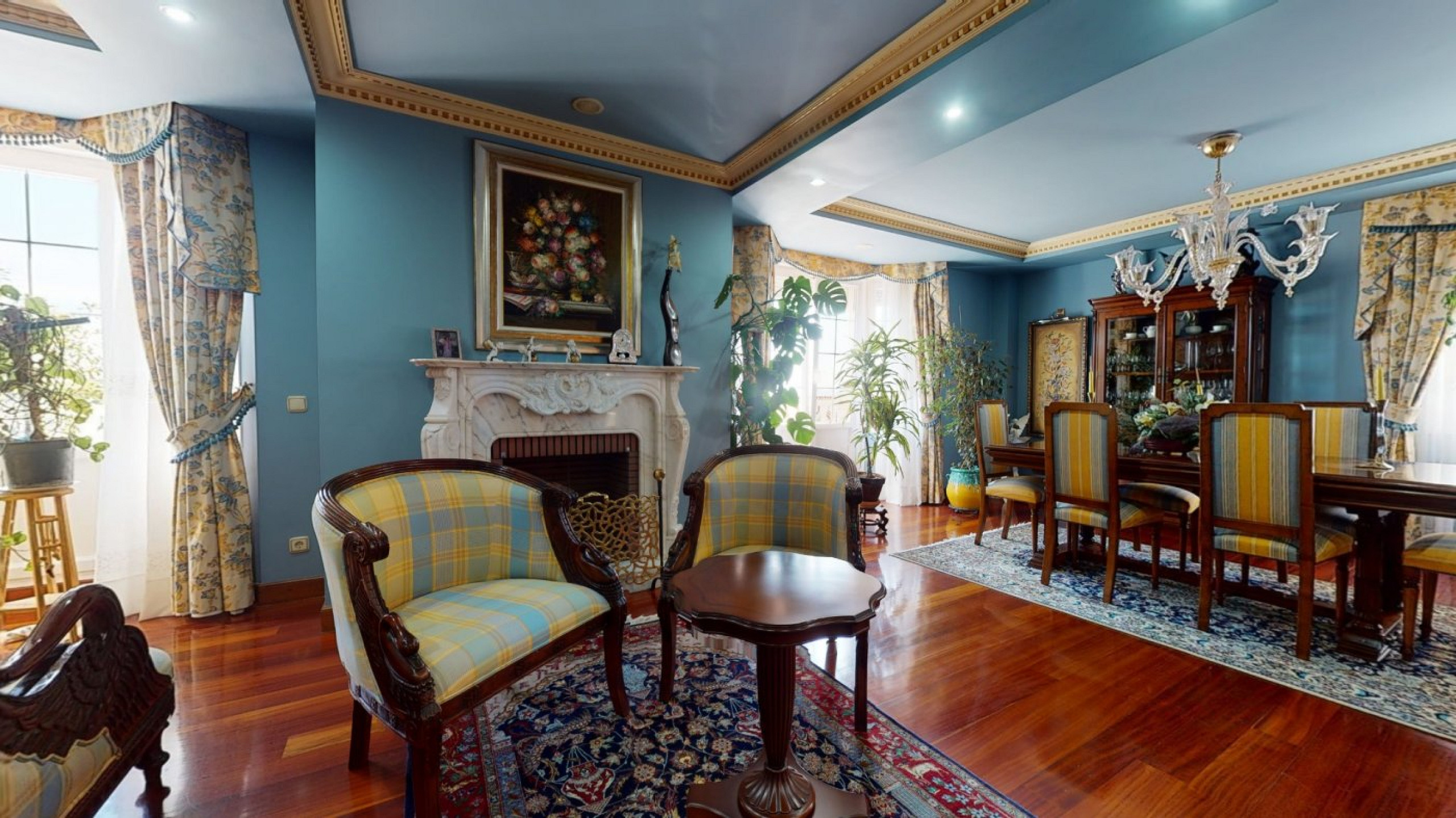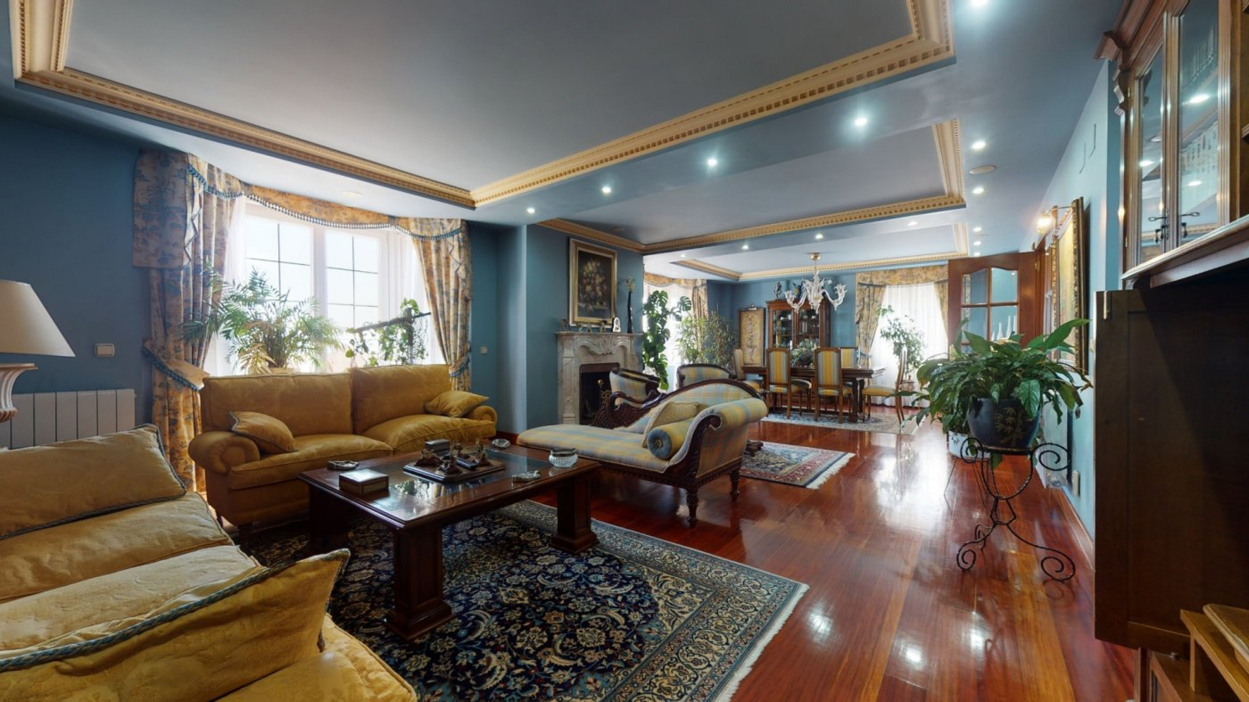 - Large open space with dining and lounge zones