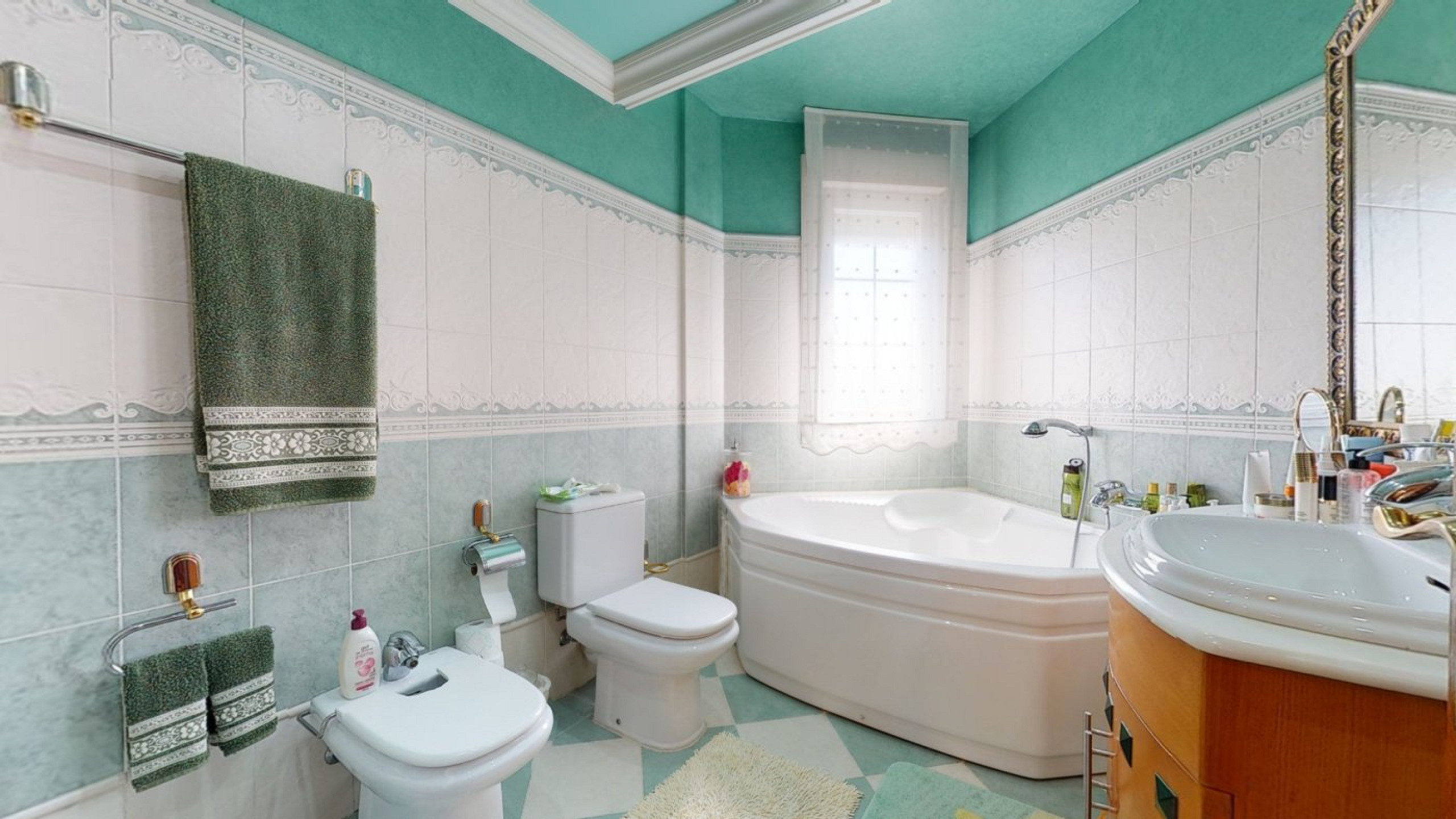 - Spacious shared bathroom with shower and bathtub