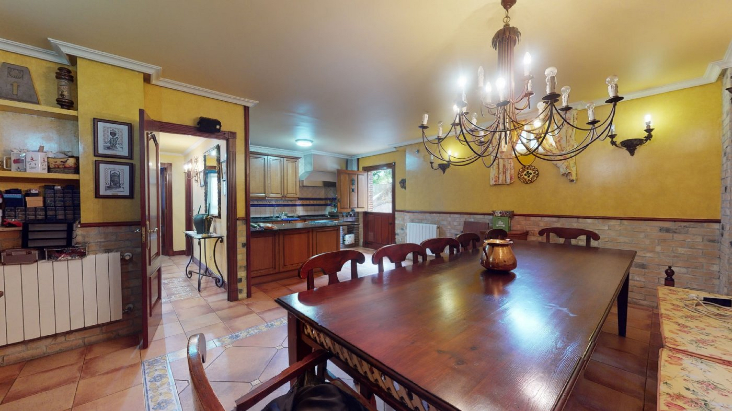- Large kitchen-dining area connected to a third room