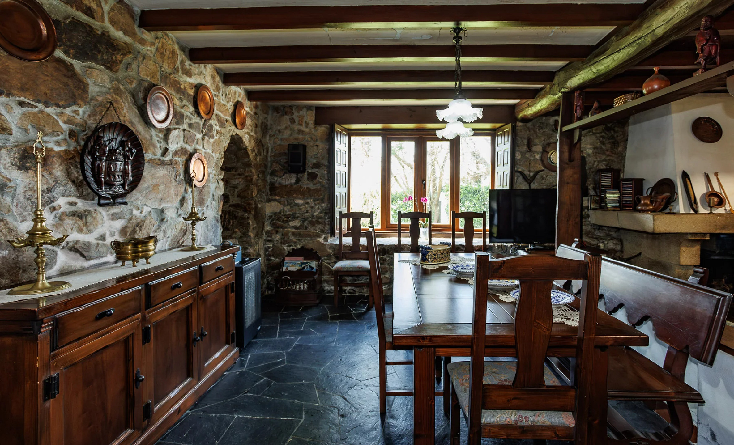 Построенный из натурального камня дом площадью 682 м² расположен на участке почти 8 805 м². Внутреннее пространство оформлено в классическом галицийском стиле с элементами дерева и камня, создавая атмосферу уюта и защищённости. Дом полностью меблирован и готов к проживанию — здесь всё продумано для комфортной жизни круглый год.