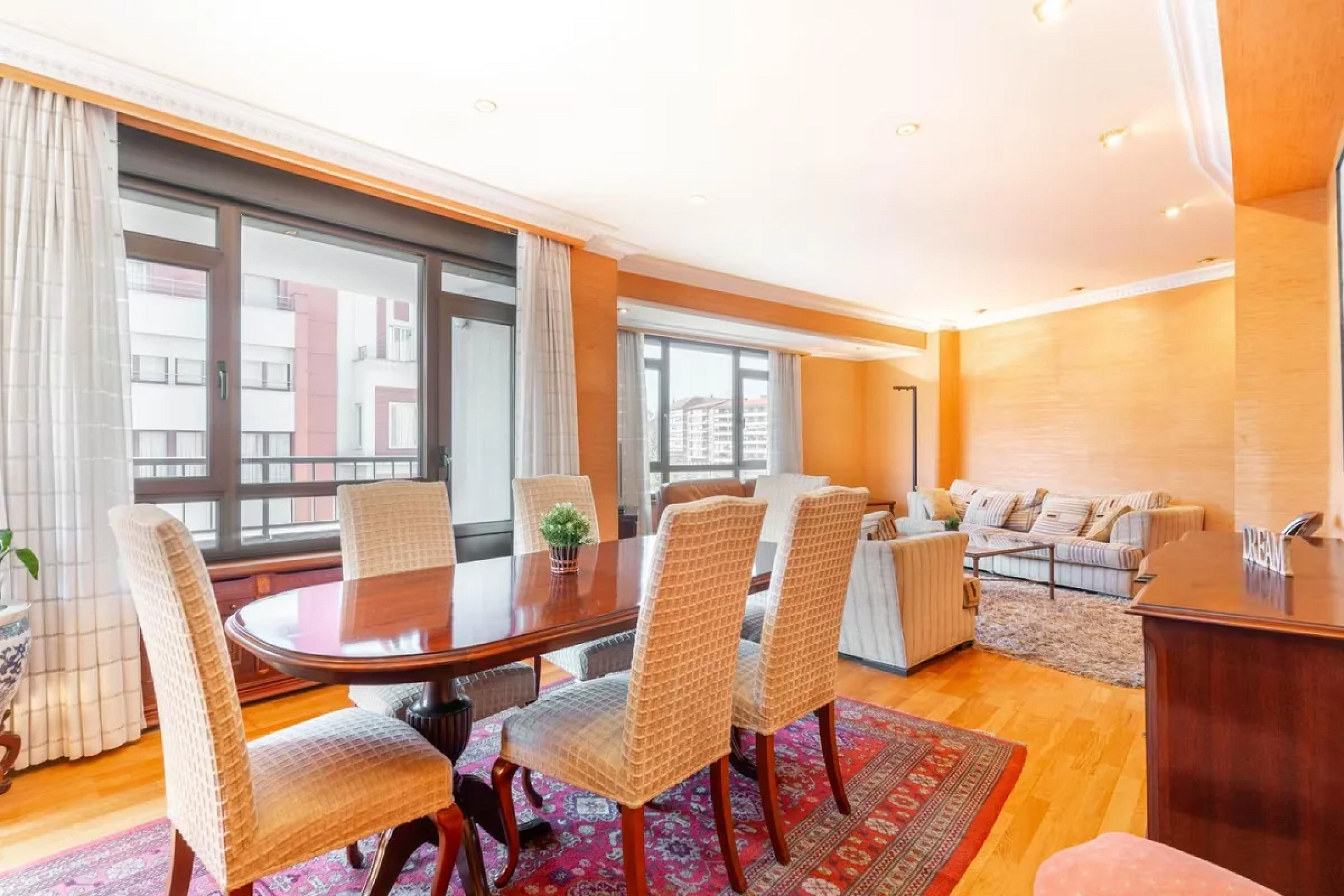 - 🛋 A spacious living-dining room with access to a terrace and balcony overlooking Calle Uría and Avenida Santander. The generous space easily accommodates both a lounge and a dining area.