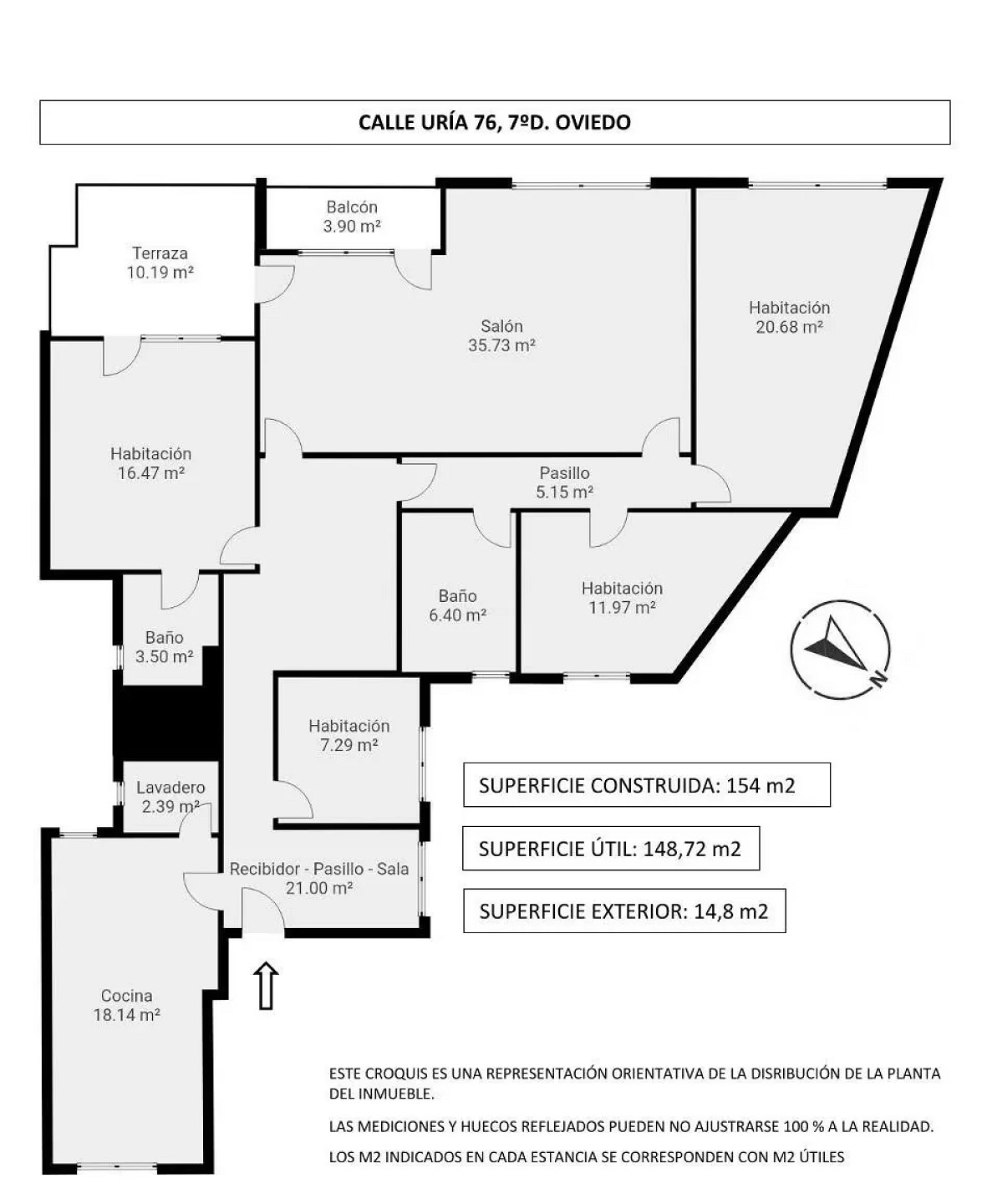 This elegant and generously sized 154 m² apartment occupies the 7th floor of a well-maintained building in the very center of Oviedo, on one of the city’s most prestigious and sought-after streets — Calle Uría. Everything you need for comfortable living is just steps away: boutiques, cafés, theaters, parks, schools, and transport links. The AVE high-speed train station is within walking distance, while the main bus terminal and city ring roads are only a few minutes away.
